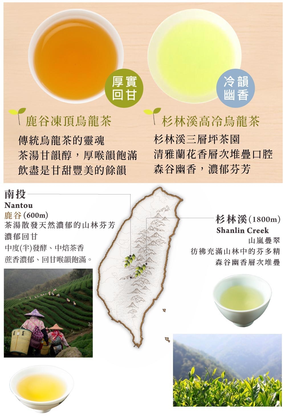 產地:杉林溪 高冷烏龍茶150g.阿里山金萱茶150g.陳韻 鹿谷凍頂老烏龍茶150g .南投 黃金蜜香烏龍茶150g