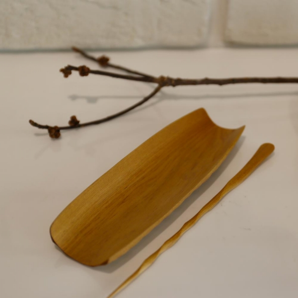 舟型肖楠木 茶則茶撥2件組
