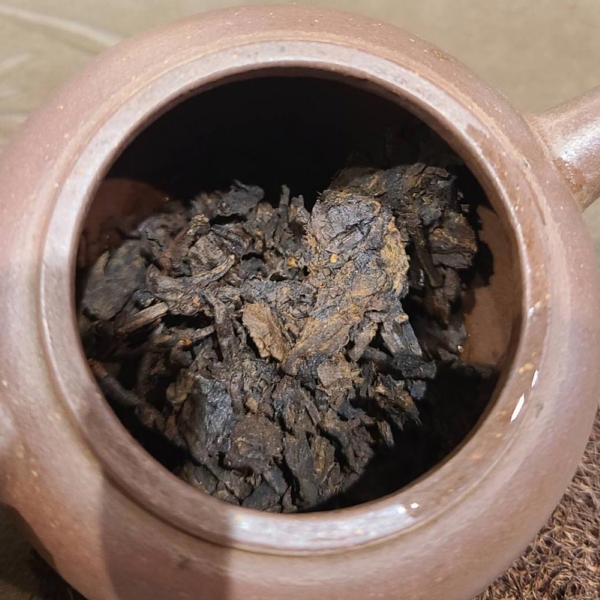 此茶產於文革前後,雲字為平雲”,「洱」字為「閃電洱」, 為文革磚的延續,棗蔘香轉沉香韻,喉韻上佳,茶膠質濃厚,這是上世紀80年代典型的風格與特徵。