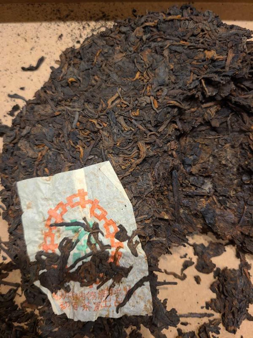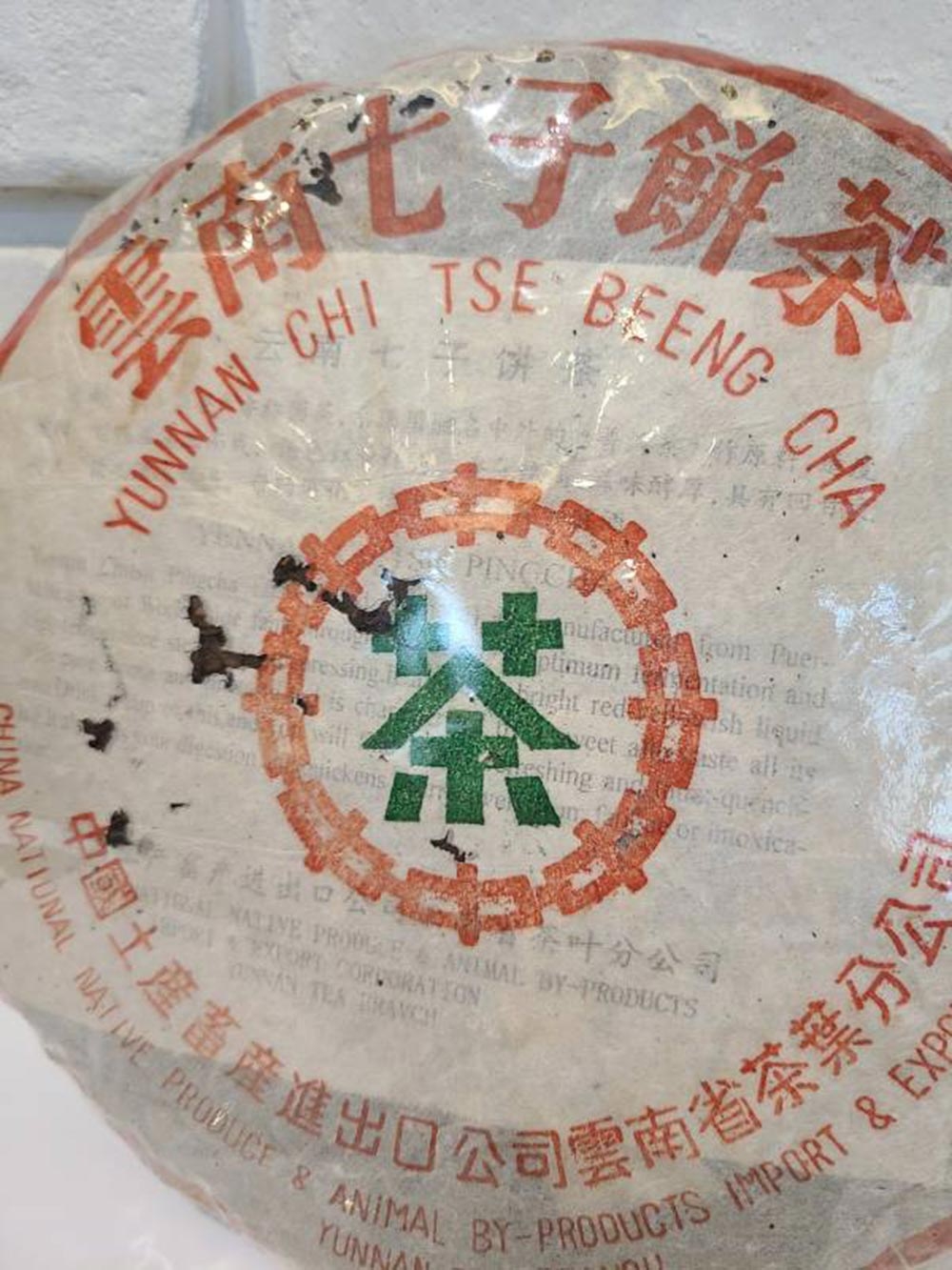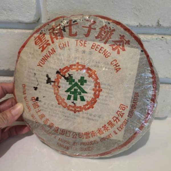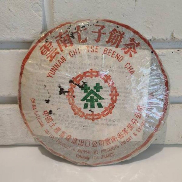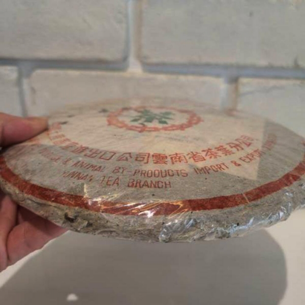 90年代省公司 包裝紙是小七字樣,7572熟餅原料以金毫細茶撒面,青壯茶箐為裡茶,渥堆發酵製作,香氣馥郁從外觀來看,發酵度較高,湯水細甜,是勐海茶廠最暢銷的熟餅。
