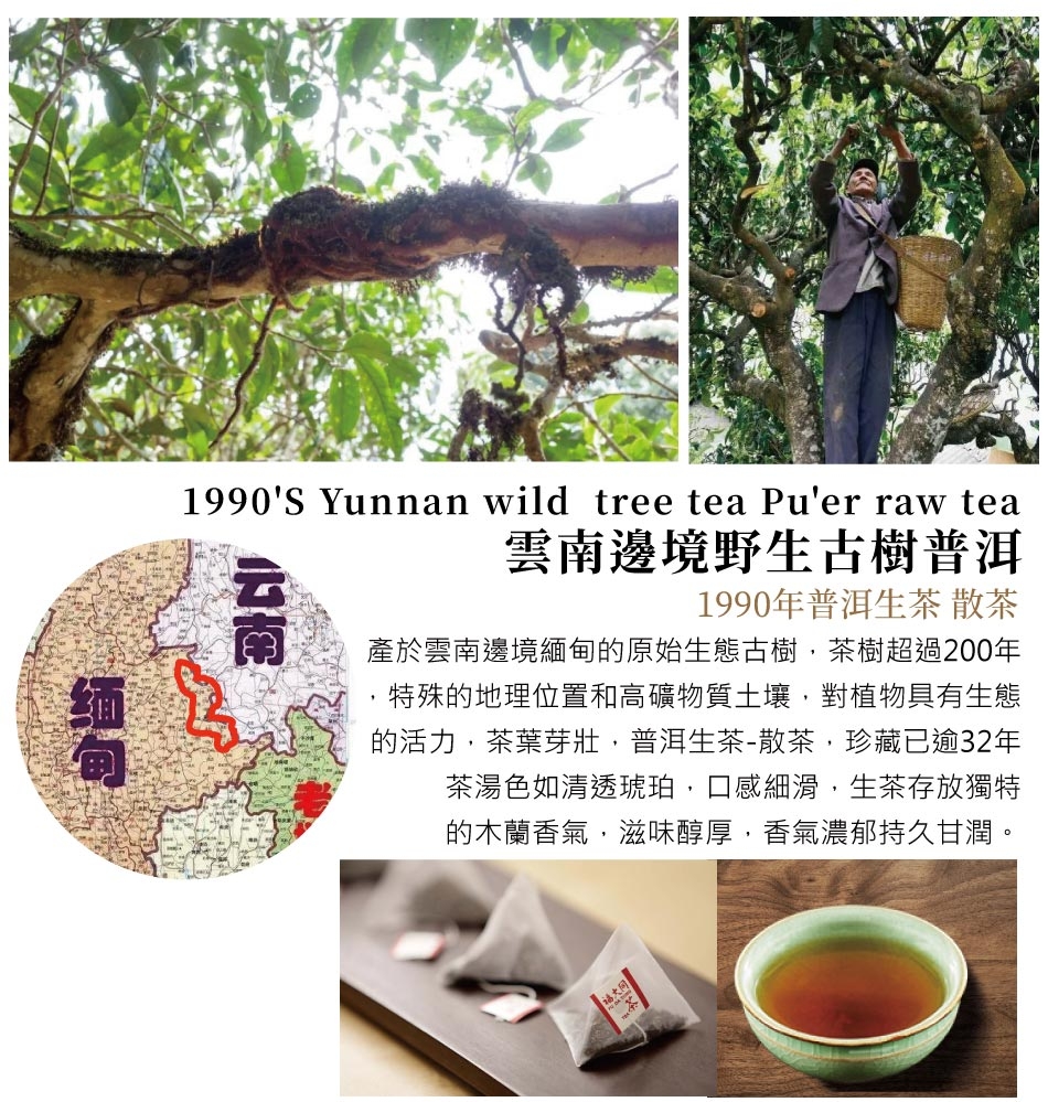 - 1990年 雲南野生古樹生茶普洱 立體茶包1顆