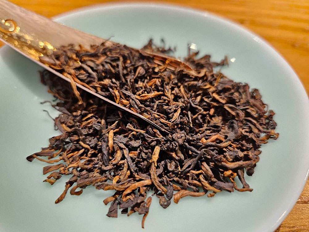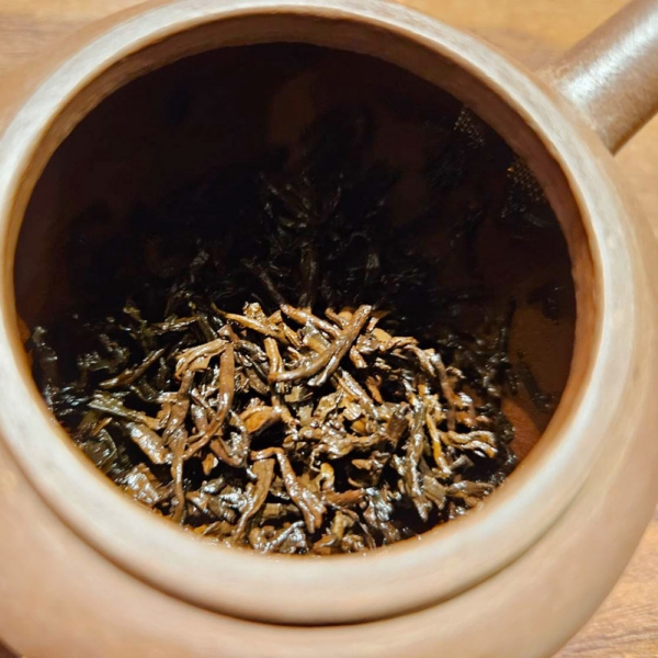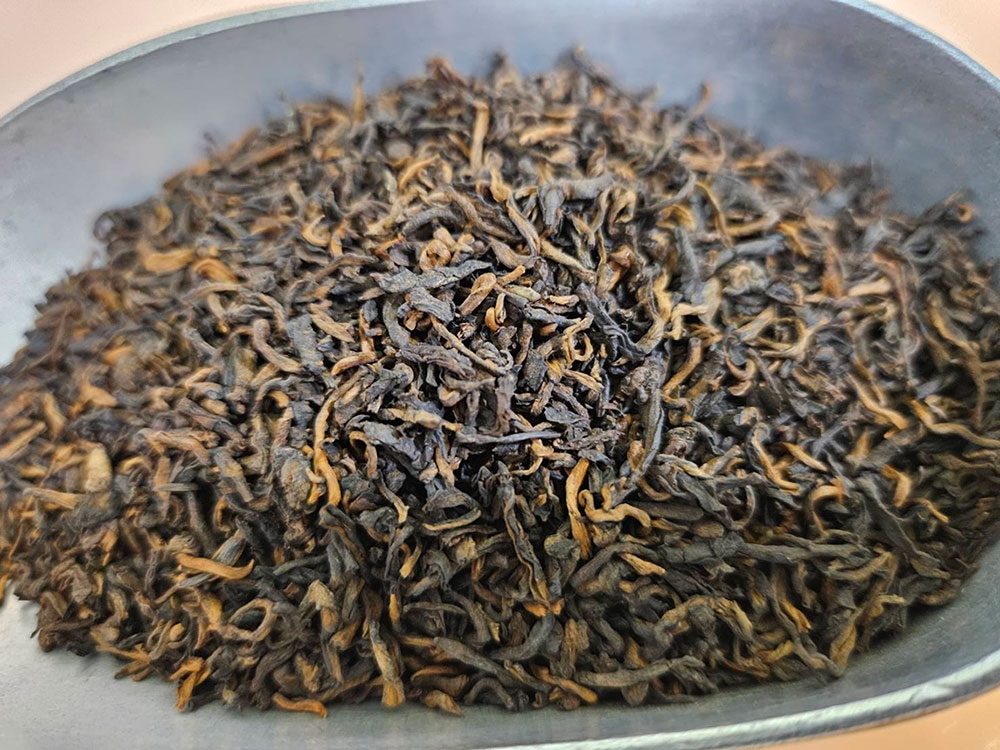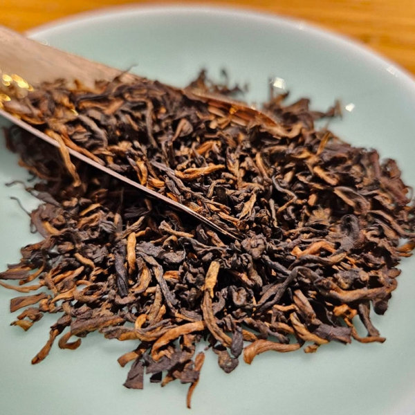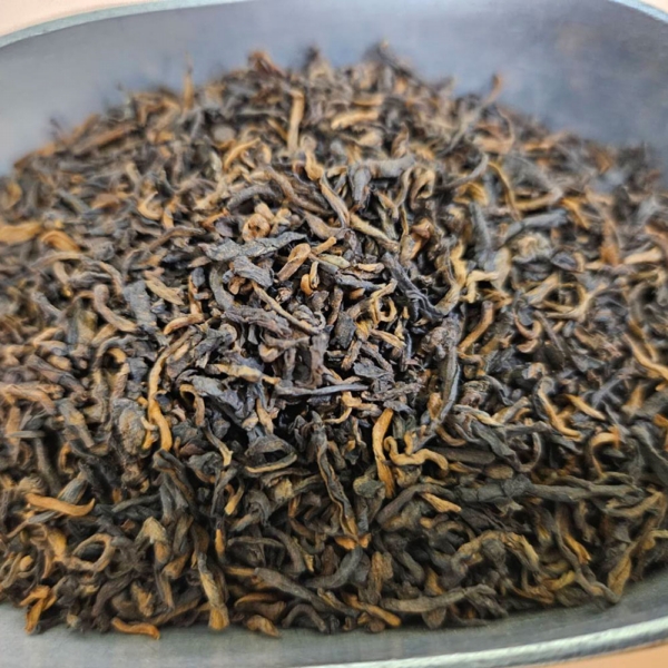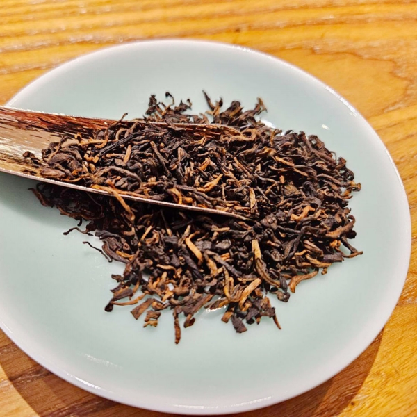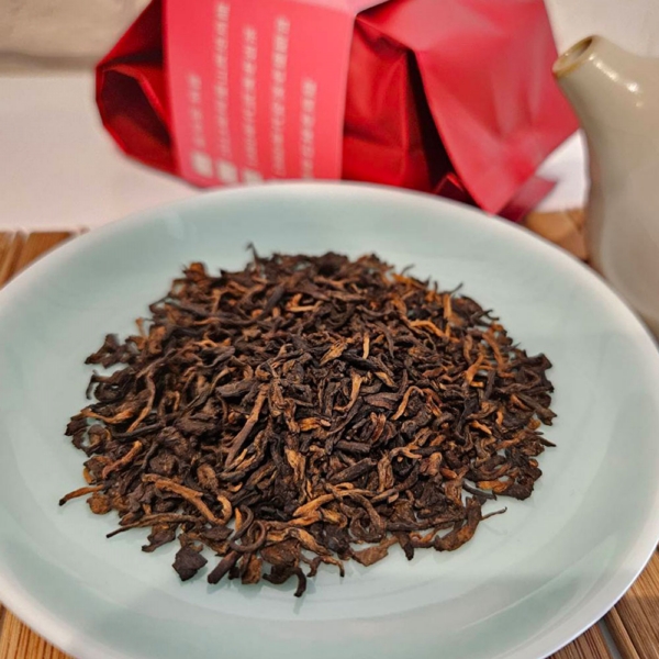 細嫩的白毫金芽,半發酵工序製作,茶乾呈現栗紅色,歷經60多年醇化陳放,樟香、木質沉香,中藥熟地香,香氣沉穩持久,茶氣舒適,難得珍貴的白針金蓮老散茶!